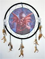 Web is 24" by 24" by 1". Total length with feathers is 35". 5 feathered beads hanging down with 2 fur tufts on the sides