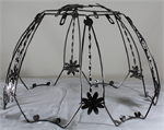 Replacement metal shade for touch lamp that has 6 glass panels. Black Chrome finish.6 glass panels not included. 14" width at widest part, 10" height.
